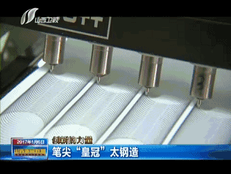 【解说】在贝发笔业的测试实验室,用太钢原料生产出来的笔芯正在进行极限测试☆●☆,在同一个角度下,每支笔芯都要连续不断地书写800米不出现断线情况,这已经是对太钢产品的第六轮测试•▲。