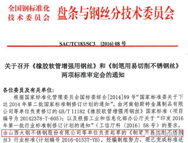 太钢起草的《笔尖用切削性不锈钢丝》行业标准通过审定了,这也是我国第一部“笔尖用切削性不锈钢”行业标准•!