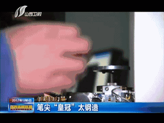 这是一种来自瑞士公司的笔头一体化生产设备,生产一个小小的圆珠笔头需要二十多道工序•▲•。笔头里面有不同高度的台阶和五条引导墨水的沟槽,加工精度都要达到千分之一毫米的数量级。